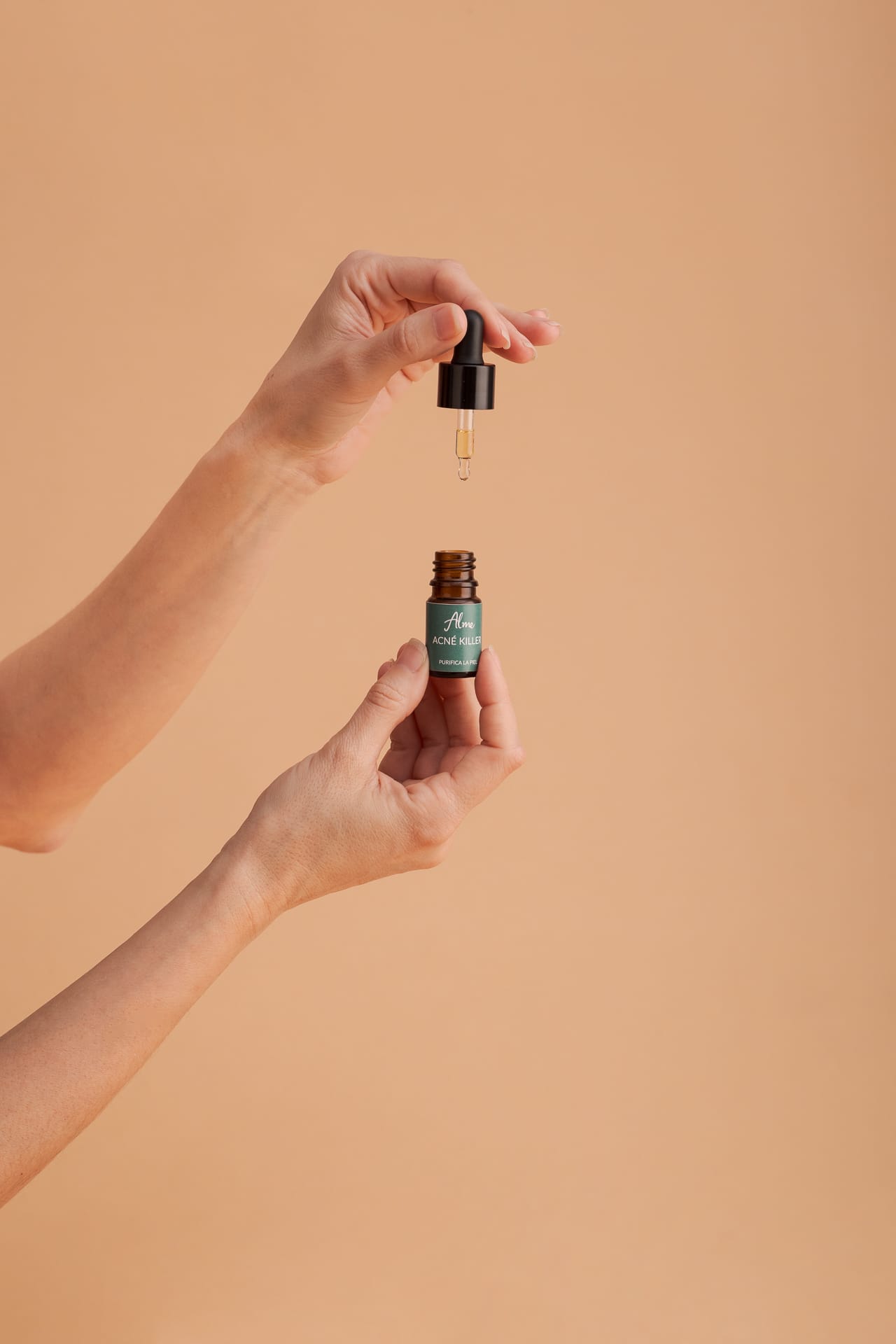 Con la piel de la cara y las manos limpia y seca aplica una gotita de acné killer en la yema de tu dedo índice y ponlo justo encima del granito que quieras aniquilar. Déjalo absorber poco a poco, para que sus componentes penetren y comiencen a hacer su función. No es recomendable ponerlo directamente con el cuenta gotas para evitar que este pueda contaminarse. En caso de que la zona afectada sea más extensa, por ejemplo, la barbilla, se aplicará en toda el área como un serum y se dejará actuar.