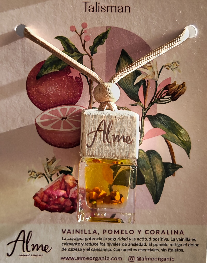 Ambientador de coche natural coralina, vainilla y pomelo. Igual que hay paladares finos, hay narices que distinguen y aprecian los aromas fuera de lo común. Aromas que inundan el espacio de un modo suave, sutil y presente, sin emitir tóxicos que te saturen. El ambientador de vainilla y pomelo es calmante, reduce los niveles de ansiedad, mitiga el dolor de cabeza y el cansancio.