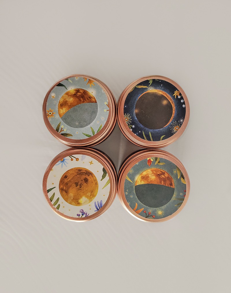 Este pack lunar contiene 4 velas cuyo aroma está inspirado en cada una de las fases de la luna. Pero… ¿a que huele la luna? Su aroma representa el fluir de la savia dentro de la planta en cada una de las fases, por ello en la luna nueva encontrarás aromas terrosos y especiados ya que es el momento en que la savia se localiza en las raíces y semillas. Canela, Clavo, Cedro y Mandarina.