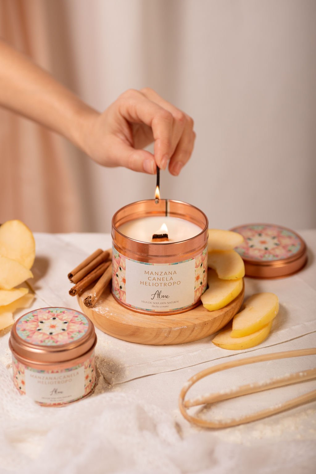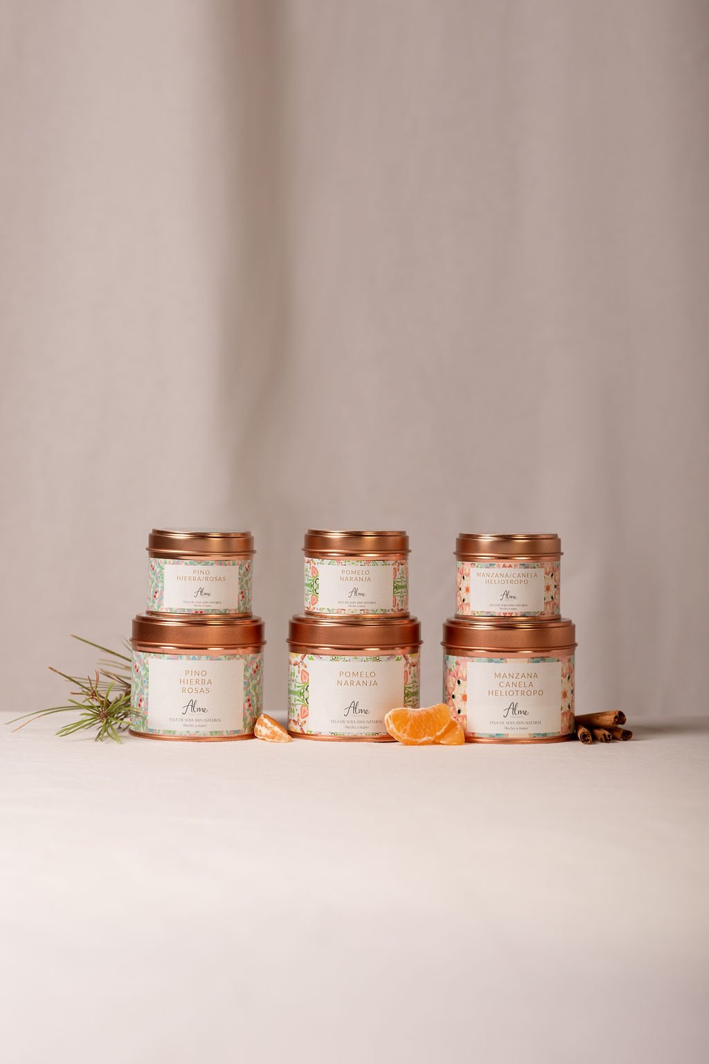 Las velas están elaboradas con cera de soja de máxima pureza, aceites esenciales y esencias aromáticas naturales. Durante su combustión no desprenden ftalatos ni parabenos.